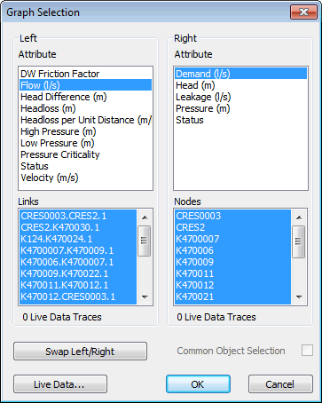 La boîte de dialogue Sélection de graphique permet d’afficher sur le même graphique des résultats pour plusieurs objets réseau.