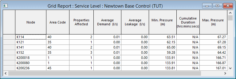 Ce champ n’est affiché que si la case Inclure les colonnes Demande et Fuite est cochée dans la boîte de dialogue Rapport tabulaire (Niveau de service).