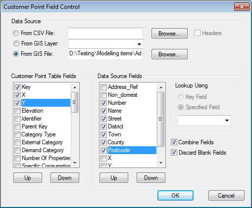 Les champs Points de consommation et Données spatiales à inclure dans le rapport peuvent être spécifiés dans les boîtes de dialogue Contrôle de champ de point de consommation et Contrôle de champ des données spatiales.