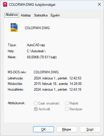 Az operációs rendszerből származó, csak olvasható információt jelenít meg a rajzfájlról.