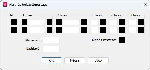 Megjeleníti az Anyagterjedelem párbeszédpanelt, ahol kiválasztható egy módosító szimbólum. Ezek a szimbólumok a bázisreferenciákat módosítják.