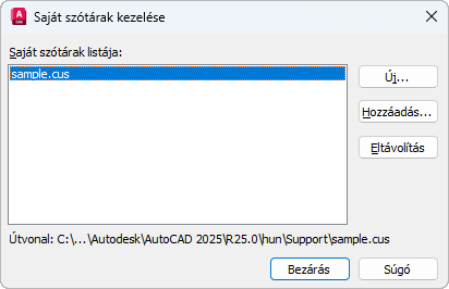 Megjeleníti a saját szótárak listáját. Egyszerre csak egy szótárt lehet kiválasztani.