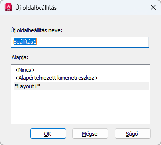 Megadja az új oldalbeállításhoz alapként használni kívánt oldalbeállítást. Amikor az OK gombra kattint, megjelenik az Oldalbeállítás párbeszédpanel a kiválasztott oldalbeállítás beállításaival, amelyeket igény szerint módosíthat.