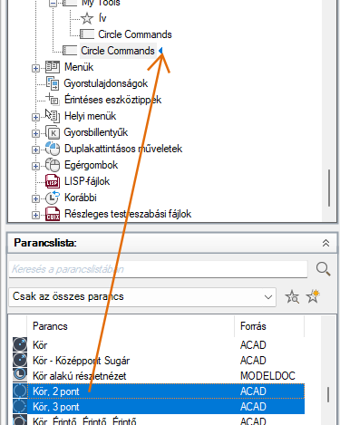 A Parancslista területről húzza a hozzáadni kívánt parancsot a <fájlnév> testreszabási beállításai területen lévő eszköztár-leporellóhoz.