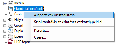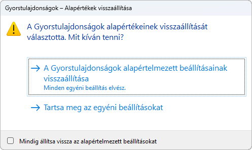 A Gyorstulajdonságok alapértelmezett beállításainak visszaállítása