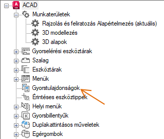 1. A Testreszabás lap <fájlnév> testreszabási beállításai ablaktábláján kattintson a jobb gombbal a Gyorstulajdonságok elemre.
