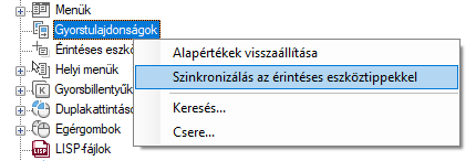 A Gyorstulajdonságok és az érintéses eszköztippek szinkronizálása