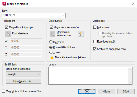 Megjegyzés: Ha egy blokk beillesztésekor nem jelenik meg az Attribútumok módosítása párbeszédpanel, állítsa az ATTREQ és ATTDIA rendszerváltozók értékét 1-re.