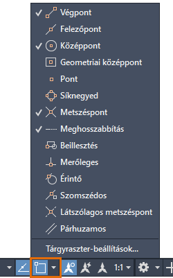 Kattintson a jobb gombbal a Tárgyraszterkövetés elemre, és válassza a beállítások lehetőséget a tárgyraszterkövetés beállításához.