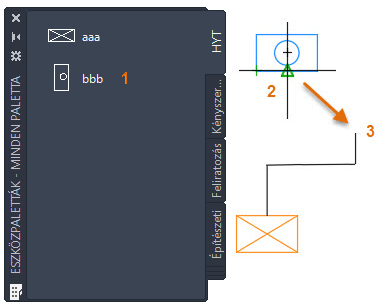 A specializált eszközpaletták nagyszerűen használhatók több különböző blokkreferencia gyors beillesztésére a rajzba. Például így használhatja az Eszközpaletták ablakot ehhez a feladathoz.