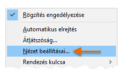 Kattintson a jobb gombbal a HYT paletta egy nem használt területére. Válassza a Nézetbeállítások pontot a menüből.