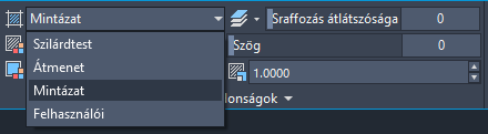 2. A Tulajdonságok panel Sraffozás típusa listában válassza ki a használni kívánt sraffozás típusát. Ebben a gyakorlatban válassza a Minta lehetőséget.