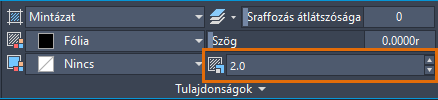 HPANG Az új sraffozási minták alapértelmezett szögét adja meg ebben a rajzban. 0.00 Nincs mentve