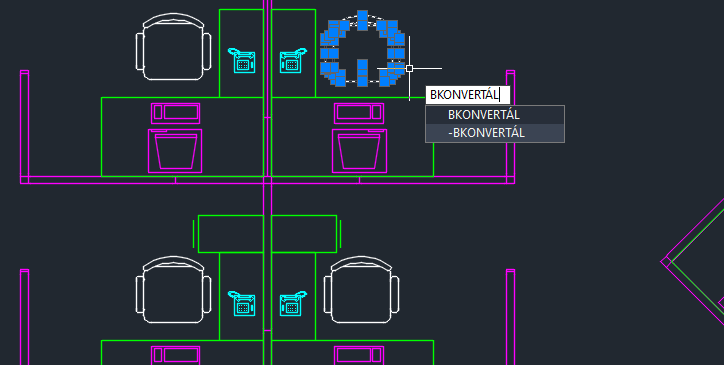-BKONVERTÁL – A parancspromptban kiadva blokkokká konvertálja a kiválasztott rajzelemeket és az azonos példányokat.
