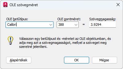 Az OLE-objektum automatikusan léptékezésre kerül a szöveg méretéhez történő illeszkedés érdekében.