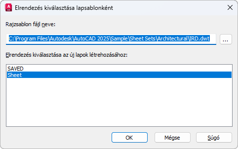 Megadja a rajzsablonfájl elérési útvonalát és nevét, amelyet az új lapok létrehozásához fog használni.