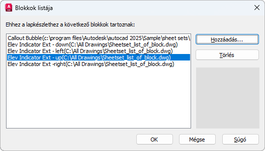 Megjeleníti a Blokk kiválasztása párbeszédpanelt.