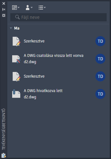 A Tevékenységbetekintő használatával megismerheti a rajzaival kapcsolatos, Ön vagy mások által elvégzett műveleteket.