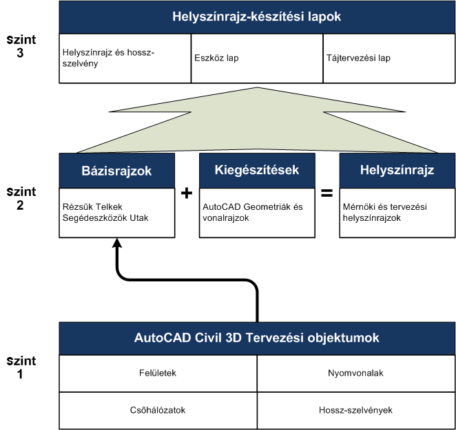 A hivatkozások használata az objektumok közötti dinamikus kapcsolatokat használja ki. Amikor egy forrásobjektumot szerkeszt, ezek a módosítások automatikusan végigfutnak a más rajzokban lévő összes másolaton. Három típusú hivatkozást használhat az Autodesk Civil 3D programmal: