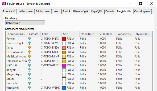 Az Existing Ground Contours stílus módosítása