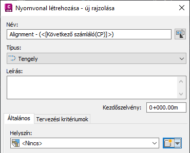 Amikor a Nyomvonal létrehozása - új rajzolása vagy a Nyomvonal létrehozása - vonalláncból párbeszédpanelről hoz létre nyomvonalat, az alapértelmezett művelet a nyomvonal létrehozása <Nincs> helyszínnel, ahogy ez a 2. ábrán is látszik.