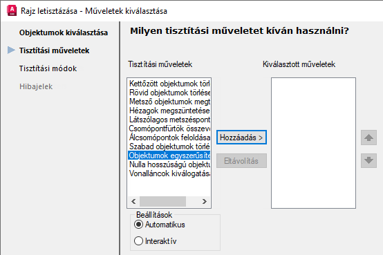 Rajz letisztázásaMegnyílik a Rajz letisztázása párbeszédpanel a 17. ábrán látható módon.