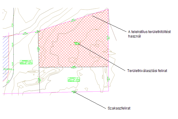 A telekterületek és a telekhatárelemek feliratstílusai különbözőek.