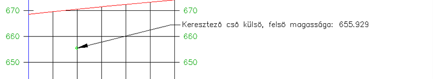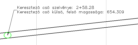 Ha a keresztező-nyomócsövet egy másik szelvényre mozgatta a nyomvonal mentén, a rendszer frissíti a feliratokat az új szelvény- és magasságadatokkal.
