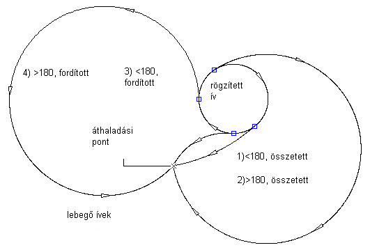 A csatolási elem (1), az áthaladási pont (2) és az irány (3) határozza meg az ív csatolási pontját és sugarát. Az ilyen típusú íveknek nem lehet módosítani a sugarát.