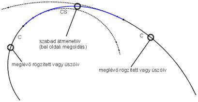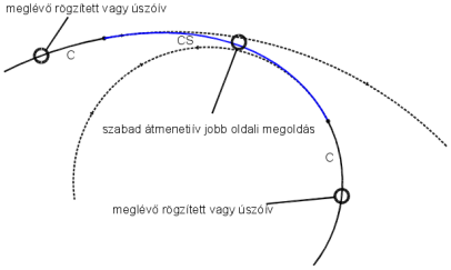 A szabad átmenetiívnek csak egy geometriai megoldása van, így nem adható meg a hossza és a P értéke. A megoldás a csatolási elemek (1, 2) típusától és a kiválasztásuk sorrendjétől függ.