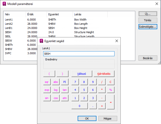 Megjelenik a Modell paraméterek párbeszédpanel.
