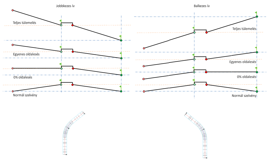 A következő illusztráció a Jobb oldali elforgatás módszerét írja le egy osztott egyoldali esésű útra.