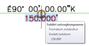 Formátum megváltozott: Azt jelzi, hogy a felirat formátuma megváltozott, de a tartalom változatlan. Az alábbi ábrán a távolság felirat színe pirosra változott.