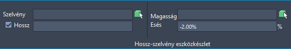 Megjegyzés: Ha bejelöli a Hossz jelölőnégyzetet, megadhat egy hosszúságot a Hossz mezőben, illetve egy esést az Esés mezőben. A Szelvény és a Szintmagasság mező ekkor nem használható.
