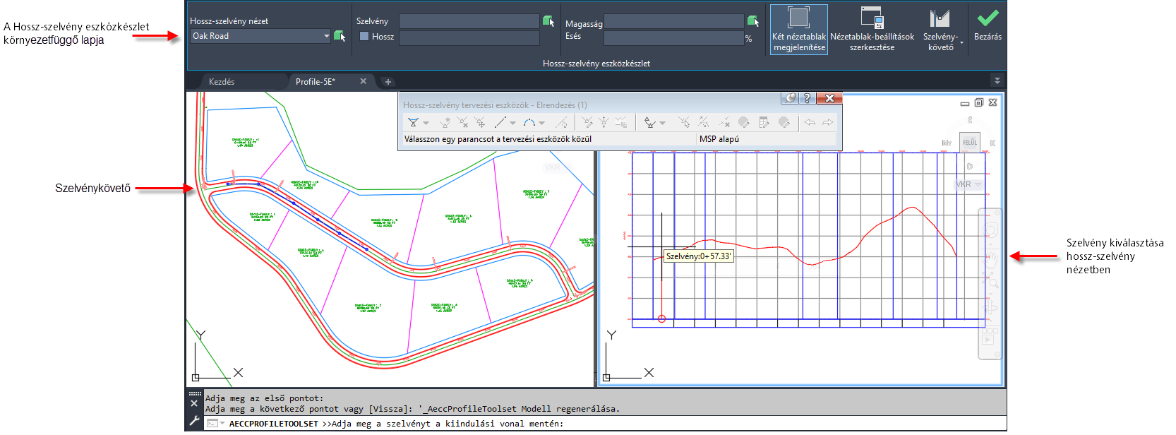 Egy parancs futtatásakor válassza ki a Hossz-szelvény eszközkészlet parancsot a Transzparens szalaglapon a Hossz-szelvény eszközkészlet környezetfüggő szalaglap megjelenítéséhez.