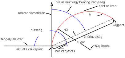 | sugár | Középpont és az ív távolsága. Ezt az értéket az aktuális földmérési adatbázis távolság mértékegységeiben adja meg. Negatív sugár megadásával az óramutató járásával ellentétes (bal) irányú ívet rajzolhat. |