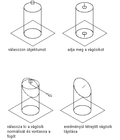 A vágósík módosító kettévág egy alakzatot, és csak az egyik részt tartja meg. A vágósík módosító lehetővé teszi, hogy egy alakzat végét lejtéssé alakítsa át, és így bonyolultabb alakzatokat, például légkiömlőnyílást is létrehozhat. A vágósíkot a normálisának, vagyis merőleges tengelyének vontatásával módosíthatja, hogy egyéni lejtéseket hozzon létre. A módosító hosszának változása a vágósíkot is frissíti.