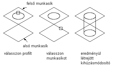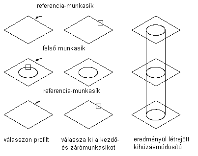 A sík kihúzás a hossz-szelvény söprését a hossz-szelvény és egy adott munkasík között végzi el. Ha a munkasík egy referencia munkasík, akkor a kihúzás frissül a munkasík elmozdításakor.