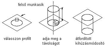 Az árnyékoló kihúzás a hossz-szelvény söprését a normális, vagyis merőleges tengelyétől egy adott távolságban végzi el. A kihúzás átfordítható, így a hossz-szelvény söprése az alapértelmezett normálissal ellentétes irányban történik.