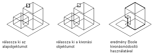 A Boole kivonás módosító egy alakzatból egy vagy több másik alakzatot von ki, és így hoz létre egy új alakzatot. A Boole kivonás módosító az alakzat létrehozásakor egy alap képletet használ: a kivonandó objektum eltávolításra kerül az alap objektumból. Hogy ez látható eredménnyel járjon, a kivonandó és az alap alakzatnak metszenie kell egymást. Ha az alakzatok nem metszik egymást, a kivonandó objektum eltávolítása semmi látható változást nem okoz a modellben.