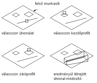 Az útvonal módosító a hossz-szelvény söprését egy útvonal geometria mentén végzi el. Egy vonal, ív, vagy más geometria kezdő és végpont hossz-szelvénye alapján hoz létre egy 3D alakzatot. A kiinduló- és végpont hossz-szelvény lehet különböző.