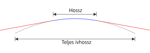 A Teljes ívhossz értéke a magassági lekerekítés teljes hosszát, a Hosszúság tulajdonság pedig az ívgeometria megoldott részének hosszúságát jeleníti meg, például amikor érintők lettek csatolva az ívek mentén.