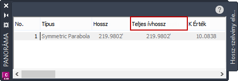 Ez az ablak nyitva marad, amikor fogóval szerkeszti a hossz-szelvényt, vagy másik parancsot ír be. Az ablakot úgy zárhatja be, ha törli az éppen kijelölt hossz-szelvényt, az X gombra kattint, vagy a