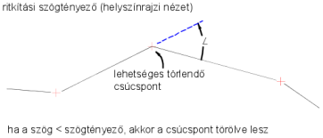 Csökkenti a közelítő elem mentén létrehozott csúcspontok számát. A ritkítási tényező figyelmen kívül hagyja azokat a csúcspontokat, amelyek a Szögtűrés értékénél kevésbé hajlanak el. Nagyobb hajlásszögeknél a ritkított pontok száma is nagyobb lesz. A Szögtűrés szögegységekben van megadva. A Szögtűrés értékének kevesebbnek kell lennie, mint a kiegészítő Távolság értékének.