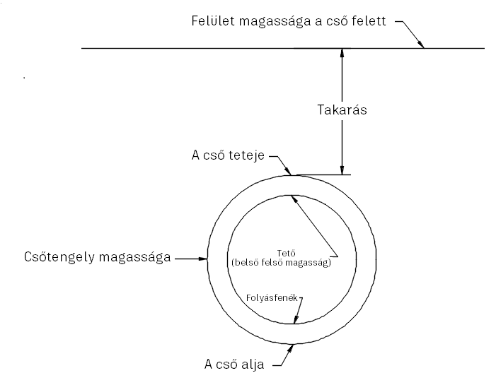 Csőtengely szintmagassága. Egy cső tengelyvonalának a szintmagassága.