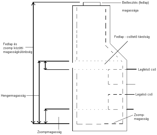 Tető vagy belső felső magasság. Egy cső tetejének belső szintmagassága.