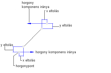 - Kezdőpont és Végpont: Ezzel a módszerrel lehet lehorgonyozni a vonal kezdő és végpontját. A vonal hosszát és szögét a horgonyobjektumok pozíciója határozza meg, és megváltoznak, ha módosítja a horgonykomponenst. Az alábbi illusztráció egy ezzel a módszerrel meghatározott vonalat tartalmaz.