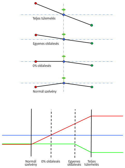 A túlemelési diagramok magyarázatáért lásd: Információk a túlemelések forgástengelyének elforgatási módszereiről.