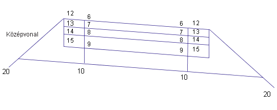 Osztott pálya süllyesztett középvonallal és csonkolt padkákkal