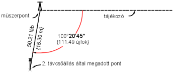 | függőleges távolság | A magasságkülönbség a műszertől a prizmáig. Ha a prizma magasabban van, mint a műszer, akkor ez az érték pozitív. |